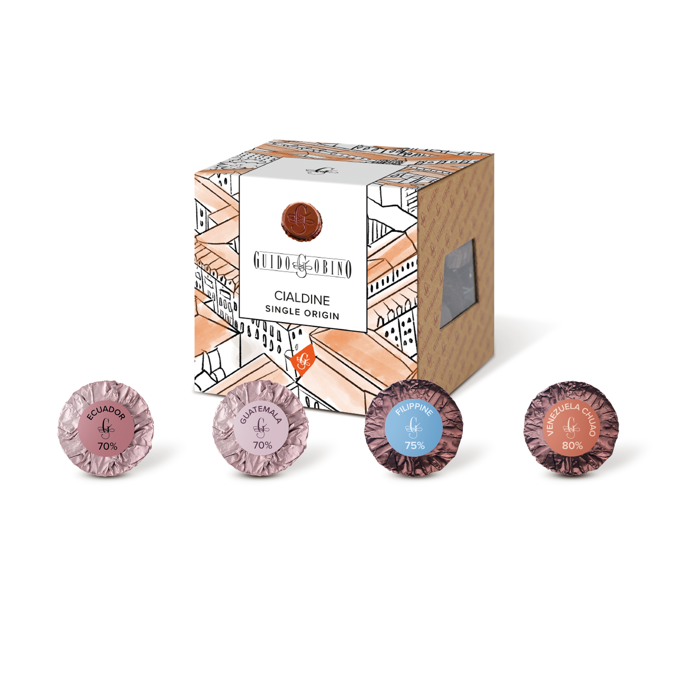 New high-quality cocoa varieties are added to the most appreciated of the past for a true journey around the world to discover the origins of this raw material: Ecuador 70%, Guatemala 70%, Madagascar 72%, Venezuela 85%, Ecuador 90%, Venezuela 100%, Criollo Colombia 75%, Criollo Guatemala 83%.