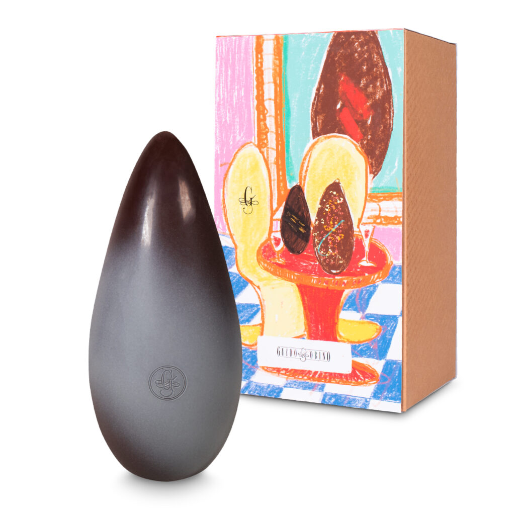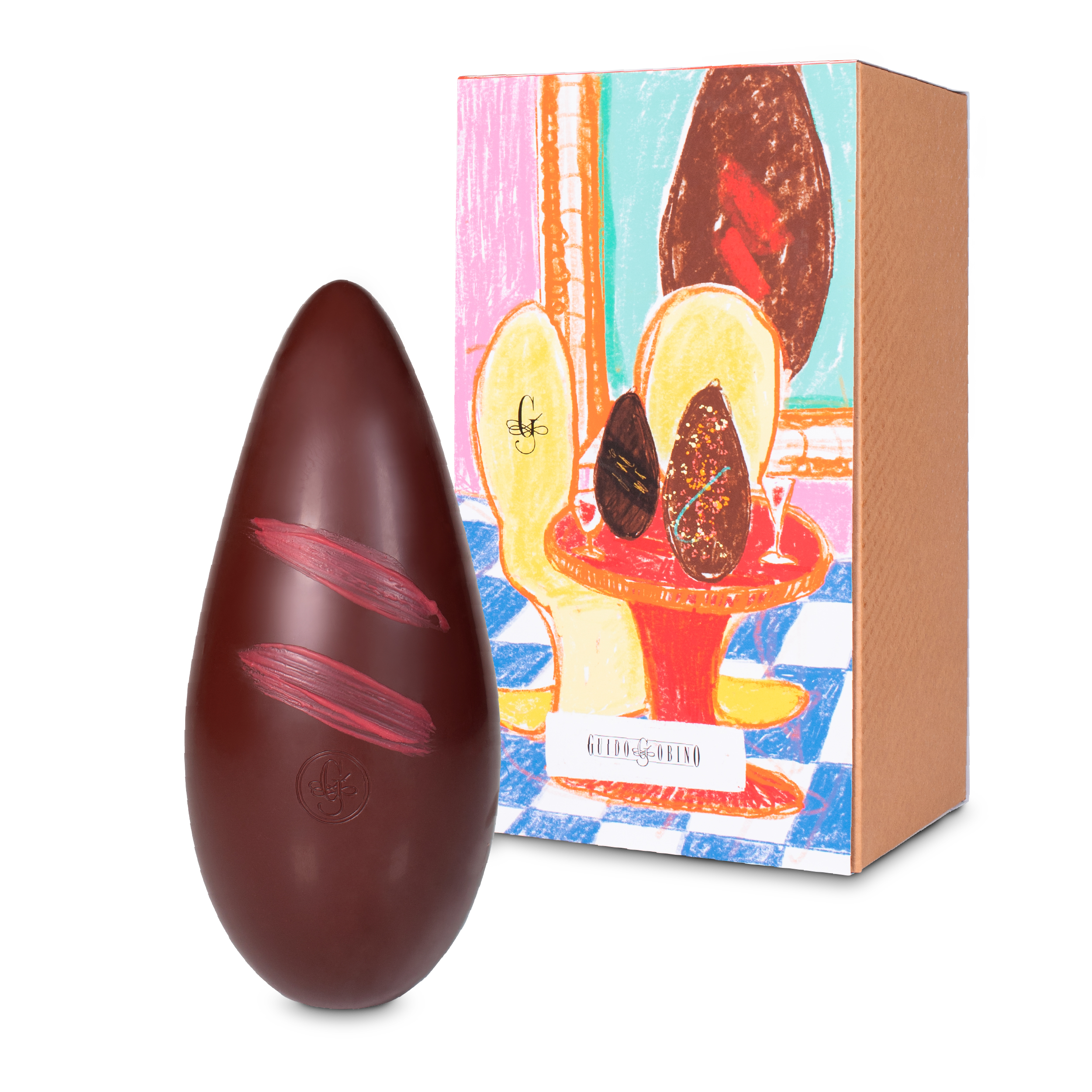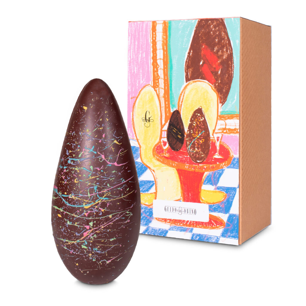 Uovo nel nostro iconico formato realizzato con Cioccolato Fondente Extra Bitter Blend 63% decorato in due colorate varianti!
