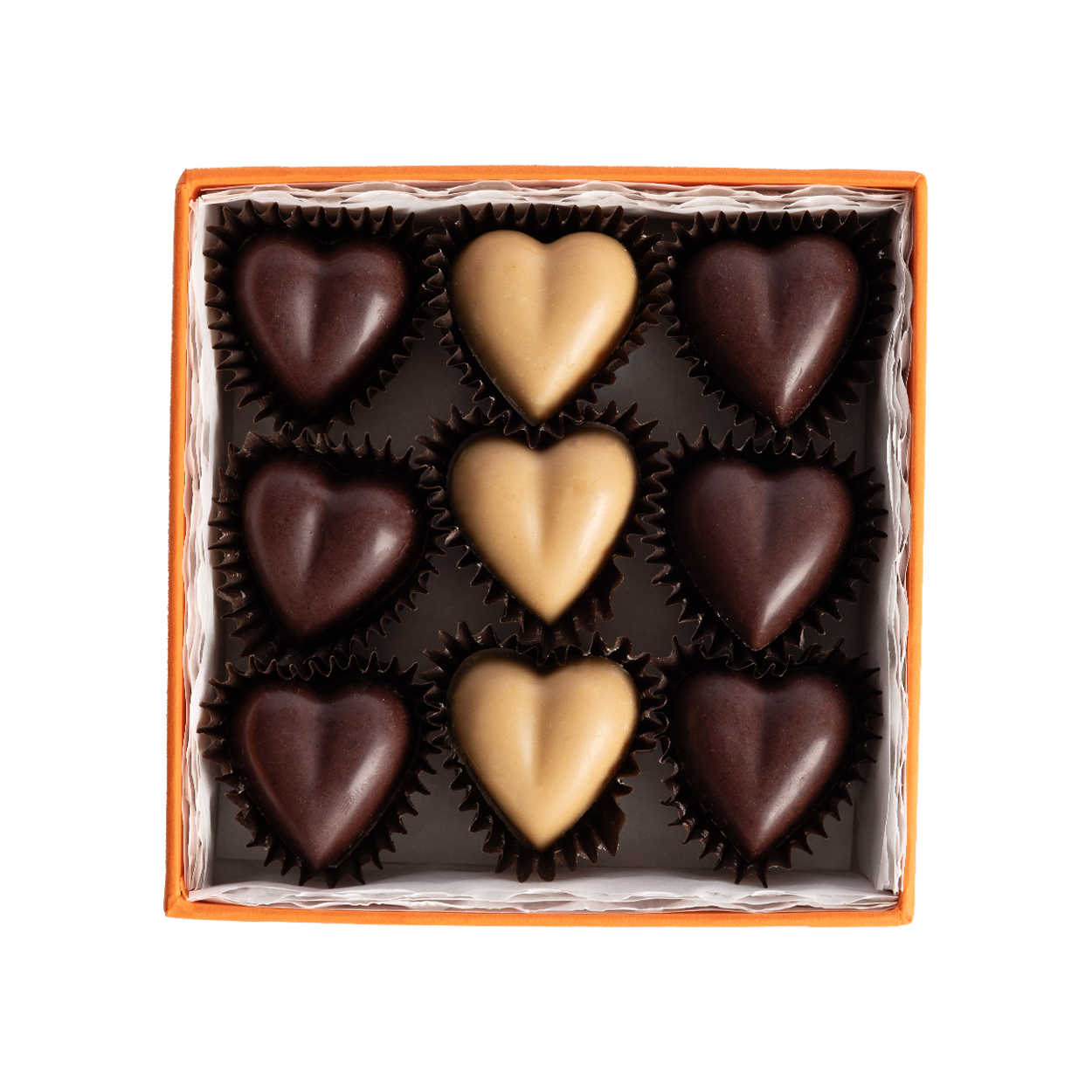 • Cuoricino Bianco, Mandorla e Sale con granella di wafer: un gusto dolce, avvolgente e vellutato. Il Cioccolato Bianco si unisce alla ricetta del nostro Tourinot Bianco ed è arricchito da una croccante granella di wafer.