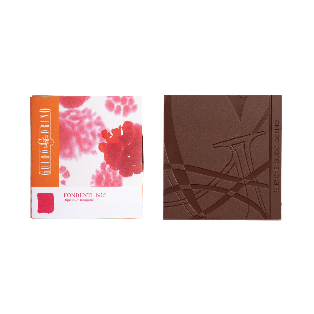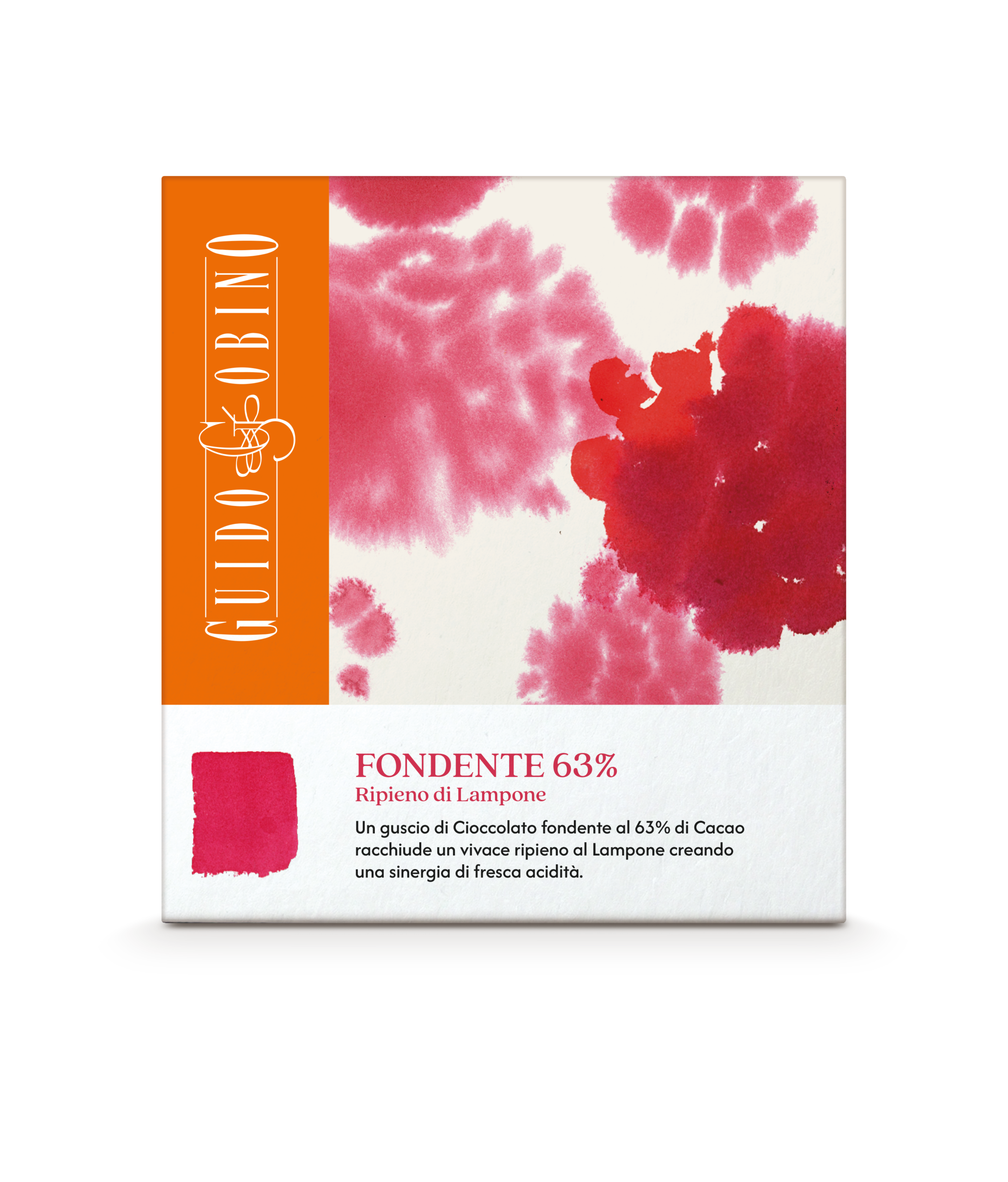 In questa tavoletta un guscio di Cioccolato fondente 63% racchiude un vivace ripieno al Lampone.